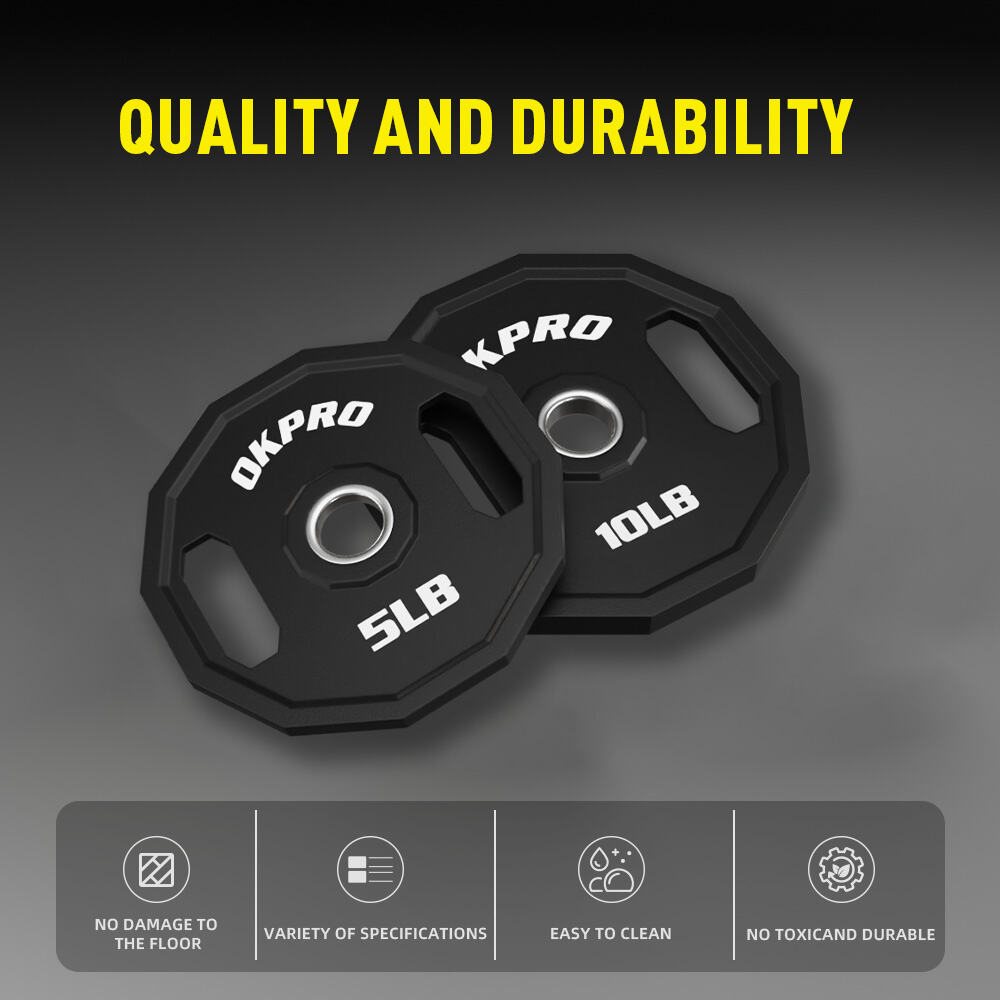 - High-Quality Materials: Each weight plate features a durable urethane coating that resists wear and discoloration—offering a comfortable grip built to withstand intensive, long-term use.