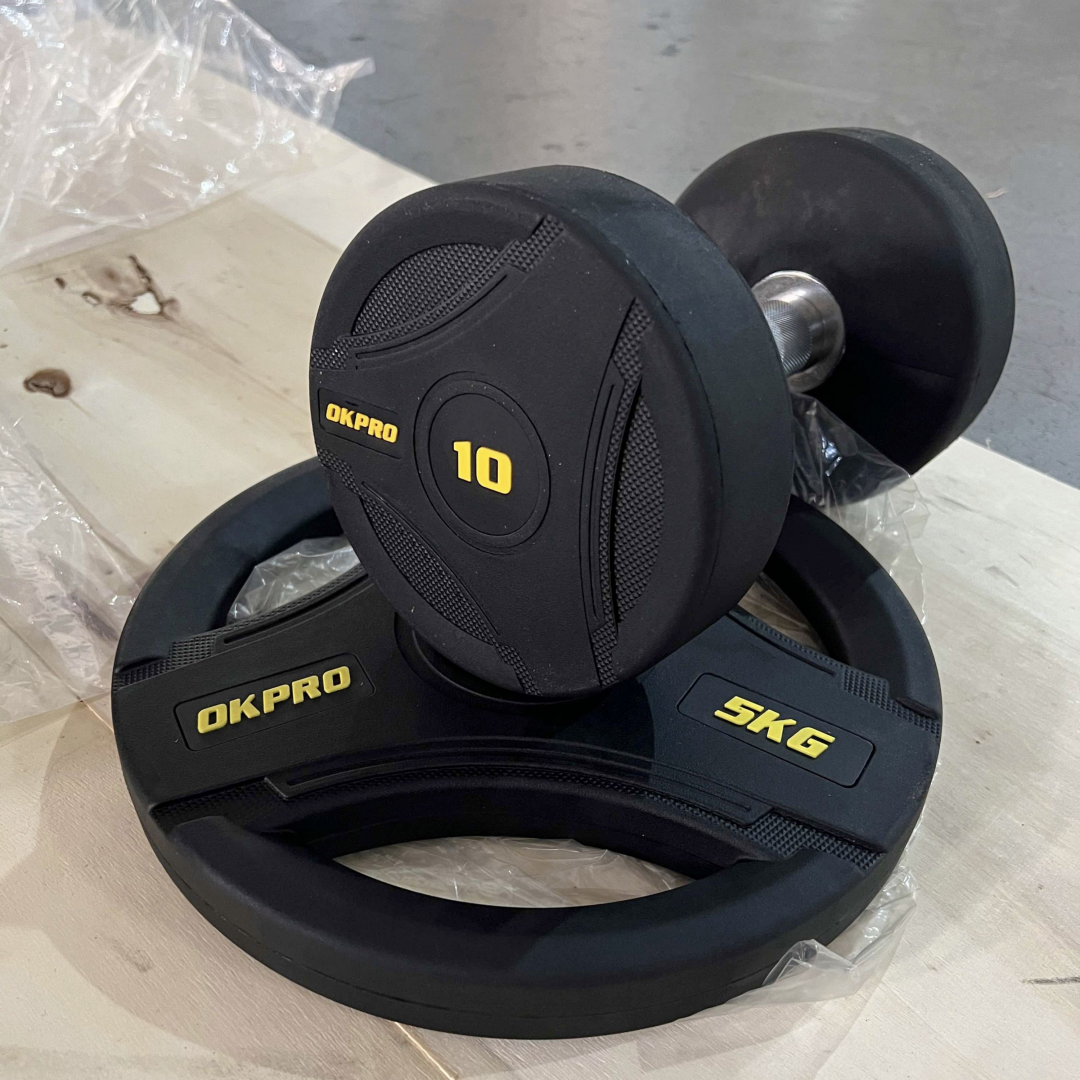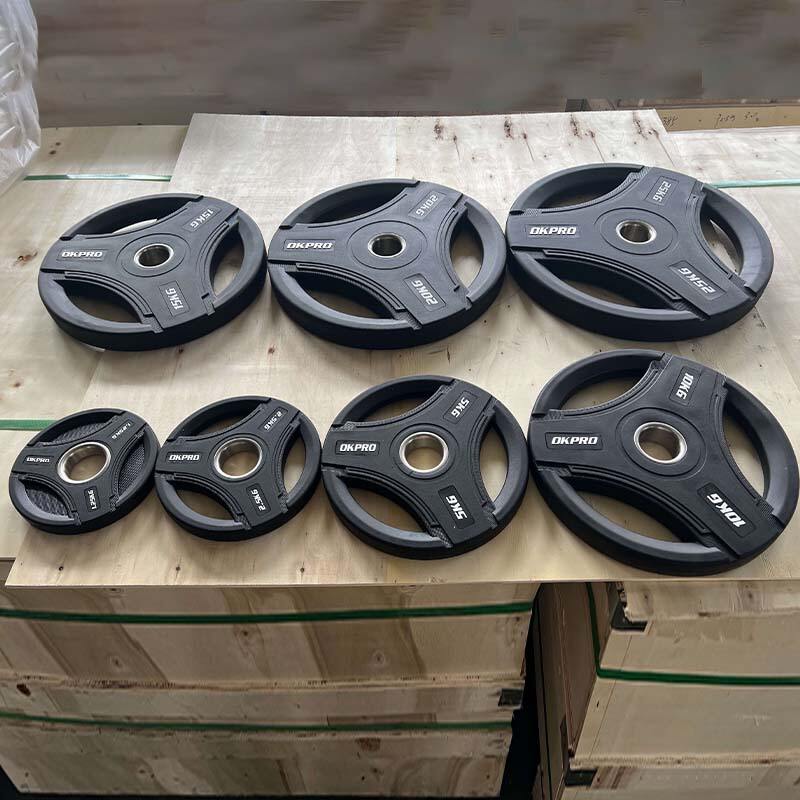 OKPRO Factory direct premium rubber weight plates: precision weight, eco-friendly rubber, and custom colors/logos for commercial gyms.